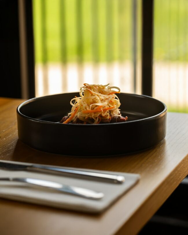 Bœuf mi-cuit mariné à l’asiatique, combawa et galanga / Semi-cooked beef marinated Asian style, kaffir lime and galanga